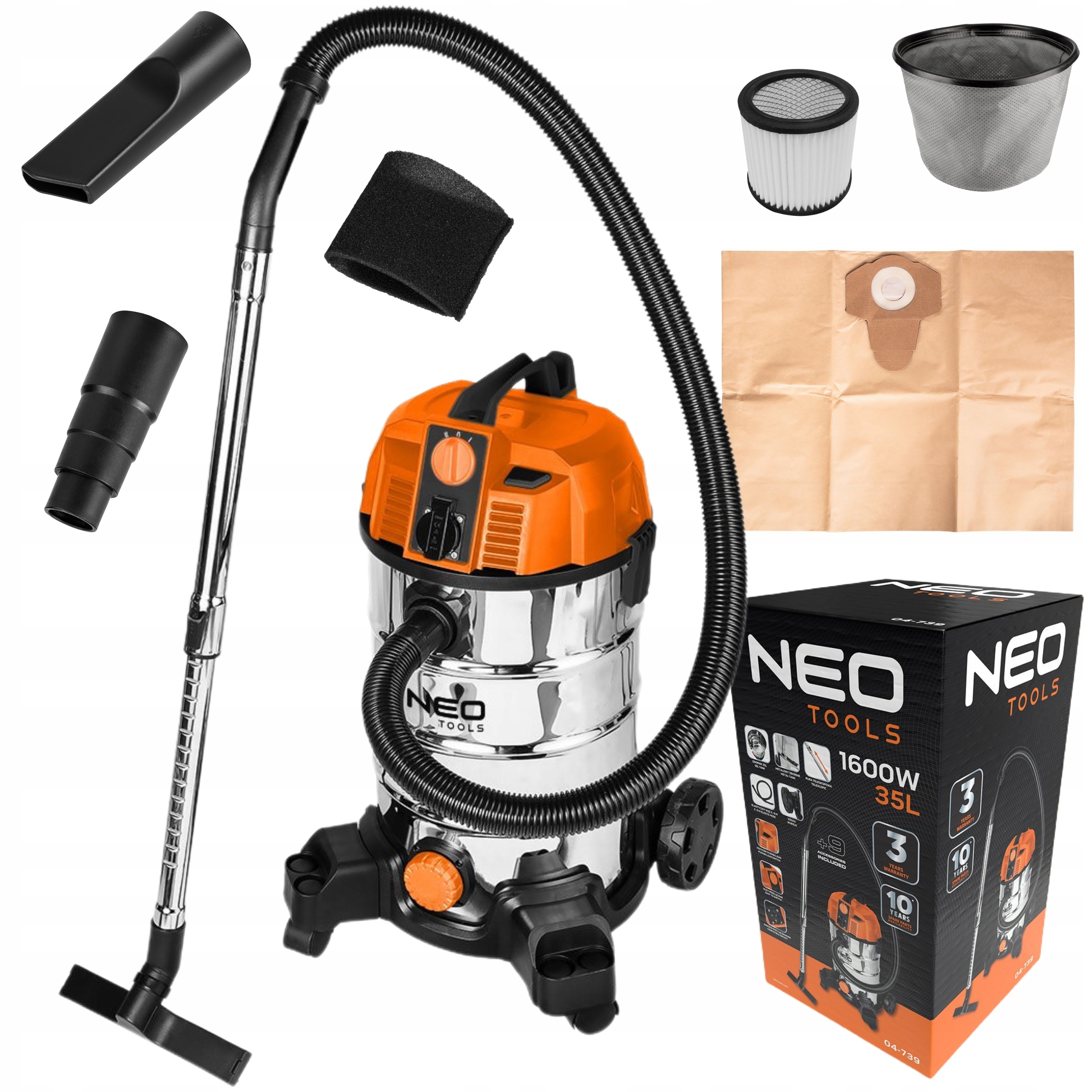 NEO ODKURZACZ PRZEMYSŁOWY 1600W 35L NA SUCHO I MOKRO DO GIPSU + OSPRZĘT
