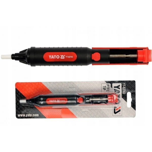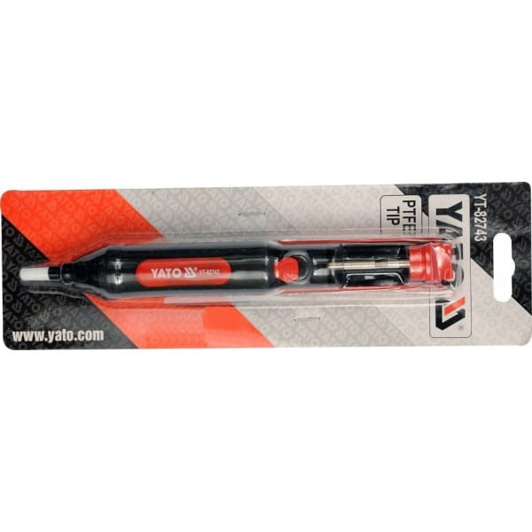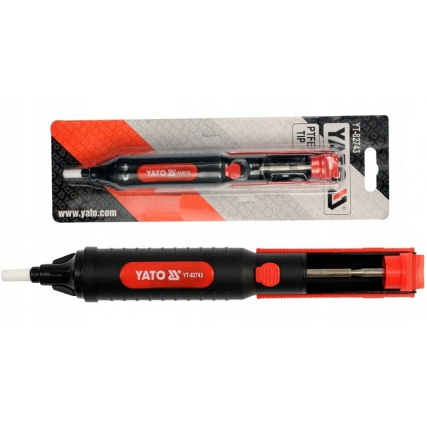 Odsysacz do wciągania nadmiaru cyny. Wykonany z tworzywa sztucznego. Wyróżnia się dużą siłą zasysania i cichą pracą.