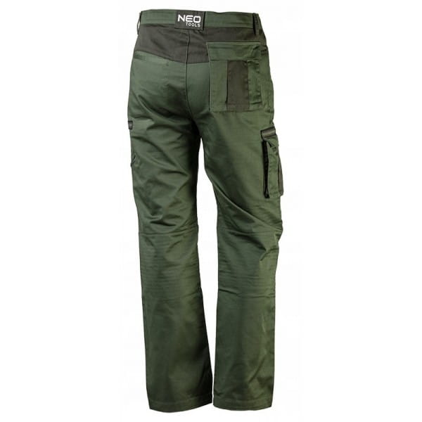 Spodnie robocze NEO z serii CAMO wykonane są z wysokiej jakości bawełniano-poliestrowej tkaniny. Profilowane kolana z przednim panelem wzmocnionym zaszewkami oraz pojemne i wytrzymałe kieszenie znacznie podnoszą komfort pracy. Wewnętrzna regulacja obwodu w pasie zapewnia łatwiejsze dopasowanie rozmiaru. Spodnie robocze wyróżnia modny oliwkowy kolor, a miejski krój pozwala na użytkowanie produktu również poza pracą. Gwarantem jakości jest certyfikat europejski oraz wykonanie zgodne z normą EN ISO 13688:2013. Marka NEO spełnia oczekiwania profesjonalistów.