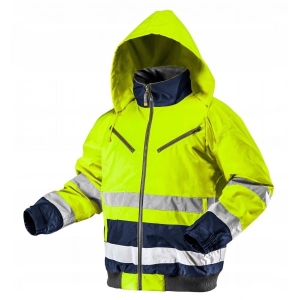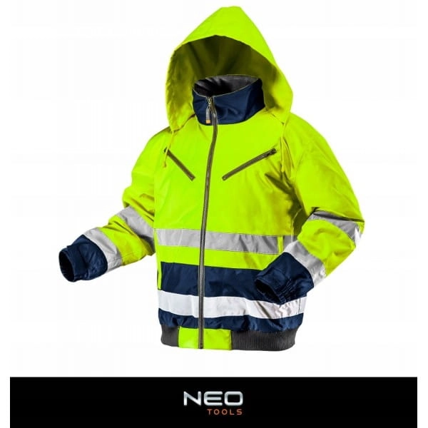 Ocieplana kurtka robocza NEO o intensywnej widzialności, wykonana z wysokiej jakości wytrzymałego materiału Oxford 300D. Kurtka o intensywnej widzialności to praktyczne rozwiązanie zwiększające bezpieczeństwo użytkownika, polegające na sygnalizowaniu jego obecności w każdych warunkach oświetlenia dziennego jak i w ciemności w oświetleniu światłami pojazdów. Wykonane z trwałego, wodoodpornego materiału fluorescencyjnego oraz z elementów odblaskowych zapewniających widoczność odpowiadającą klasie 2, zgodnie z wymaganiami normy PN-EN ISO 20471:2013. Ocieplane lekkim poliestrem, który zapewni komfort w mroźne dni. Klejone szwy oraz materiał o wodoodporność 1000 mm pozwolą na pracę również w czasie deszczu. Elastyczny ściągacz w pasie oraz regulowany ściągacz na rękawach zapewniają dodatkową ochronę przed zimnem i wiatrem. Solidne, zapinane na zamek kieszenie bezpiecznie przechowają nasze rzeczy. Gwarantem jakości jest certyfikat europejski oraz wykonanie zgodne z normą EN ISO 13688:2013