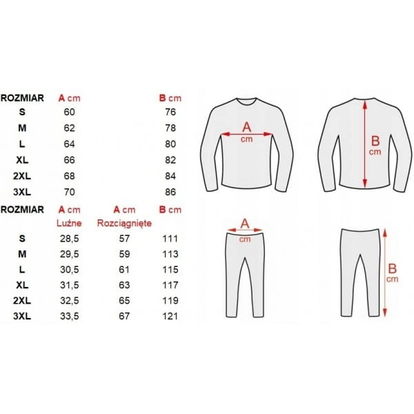 Aby prawidłowo dobrać rozmiar należy zmierzyć ubranie o podobnej konstrukcji z własnej garderoby i porównać z poniższą tabelą: