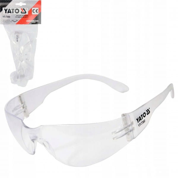 Okulary ochronne YT-7360 o wadze zaledwie 23g przeznaczone do ochrony oczu przy pracach ręcznych i mechanicznych np. szlifowanie, wiercenie, dłutowanie itp.