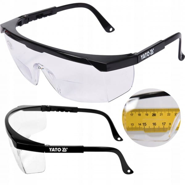 Okulary ochronne YT-73615 z soczewkami powiększającymi przeznaczone są do ochrony oczu przy pracach ręcznych i mechanicznych, takich jak szlifowanie, wiercenie, dłutowanie itp.