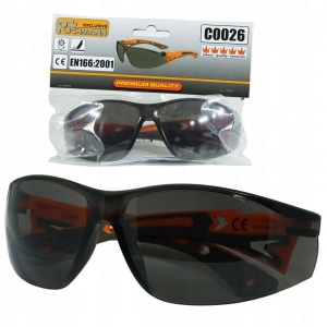 Okulary ochronne przeciwsłoneczne C0026 przeznaczone są do ochrony przed odpryskami ciał stałych występujących przy ręcznej i mechanicznej obróbce m.in. drewna oraz metalu. Nadają się do ciągłego stosowania dzięki I klasie optycznej. Wyposażone w filtr przeciwsłoneczny 5-3.1