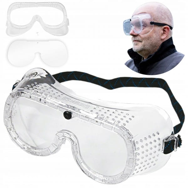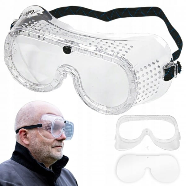 Gogle ochronne NEO, białe, oparte na lekkiej i nowoczesnej konstrukcji są odpowiednie wszędzie tam, gdzie oczy są szczególnie narażone na uszkodzenie. Gogle mogą być wykorzystywane w profesjonalnych praca, jak i amatorskim majsterkowaniu. Dzięki dobremu przyleganiu oraz regulowanemu gumowemu paskowi, szczelnie chronią oczy przed drobnymi cząstkami. Zapewniają odpowiednie pole widzenia. Użyte poliwęglanowe szkła skutecznie chronią przed szybko poruszającymi się cząsteczkami (120 m/s) przy średniej energii uderzenia, jak również rozgrzanymi opiłkami metali. Soczewki klasy optycznej 1, pozwalają na stosowanie gogli nawet przez kilka godzin bez przerwy. Perforacje na bokach zapewniają wentylację i zapobiegają parowaniu gogli. Charakterystyka produktu: gogle ochronne na oczy; soczewki klasy optycznej 1 pozwalają na stałą pracę; klasa odporności B zapewnia dużą odporność na szybko poruszającymi się cząsteczkami (120 m/s) przy średniej energii uderzenia; gumowy, regulowany pasek ułatwia dopasowanie do głowy; dobrze przylegające szybki chronią przed gazami i pyłami; duży kąt widzenia nie ogranicza widoczności. Mają Certyfikat CE na zgodność z normą EN166 Materiał: szybki ochronne z poliwęglanu, pasek mocujący z gumy.