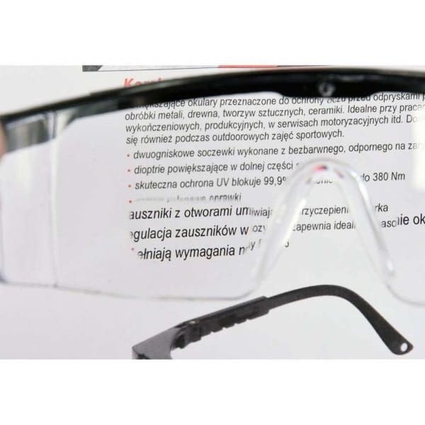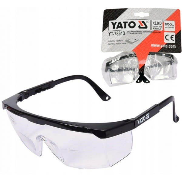 Okulary ochronne YT-73613 z soczewkami powiększającymi przeznaczone są do ochrony oczu przy pracach ręcznych i mechanicznych np. szlifowanie, wiercenie, dłutowanie itp.