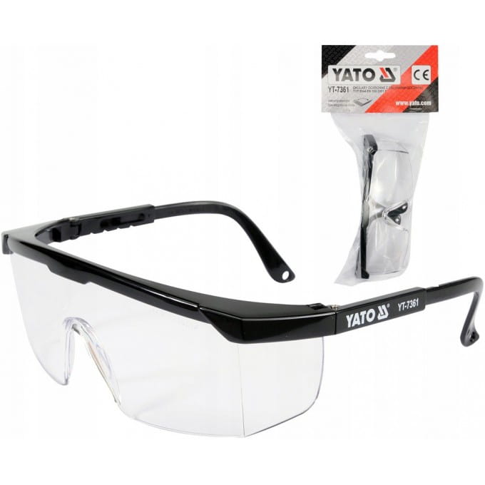 Okulary ochronne YT-7361 o popularnej konstrukcji przeznaczone do ochrony oczu przy pracach ręcznych i mechanicznych np. szlifowanie, wiercenie, dłutowanie itp.