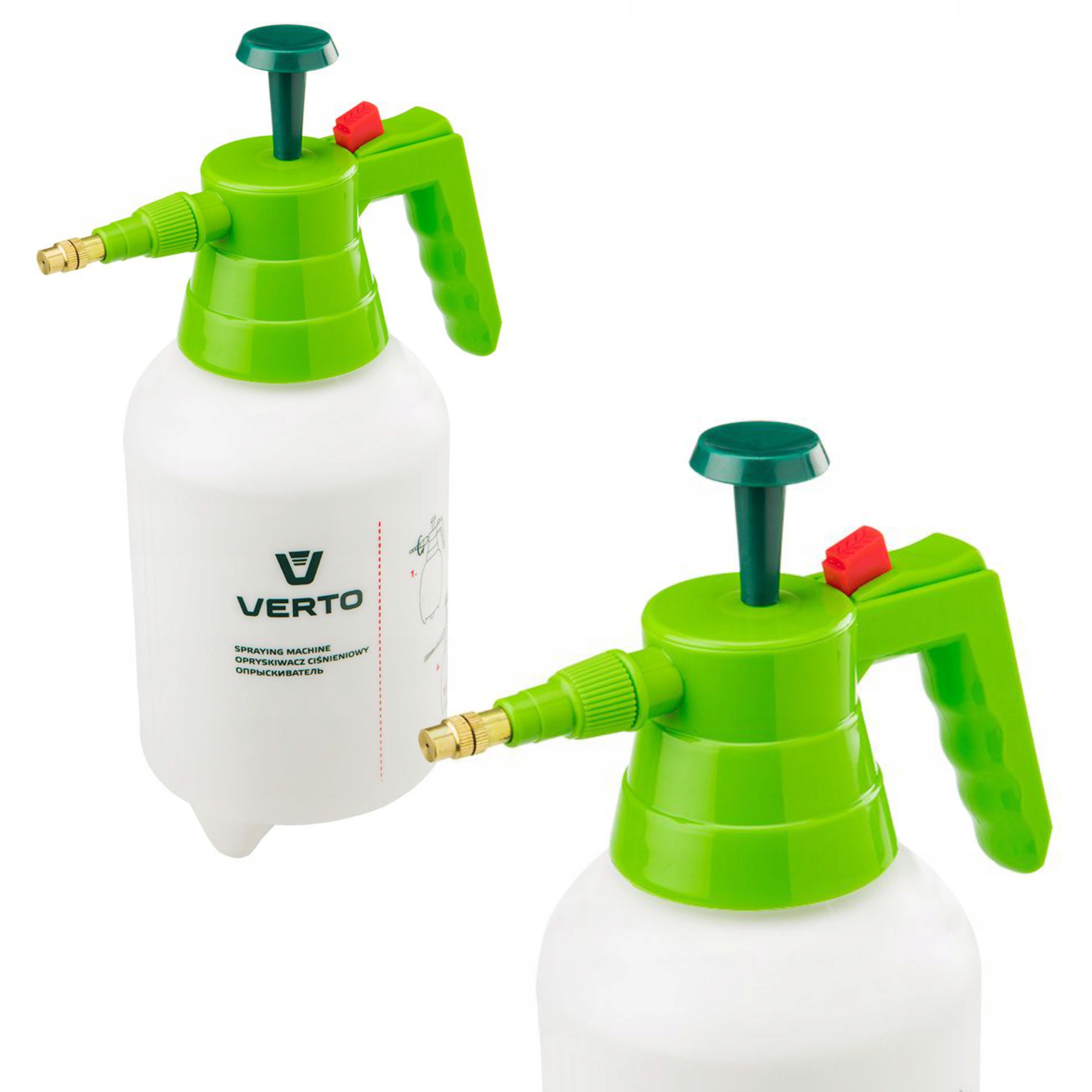 Opryskiwacz ciśnieniowy VERTO (nr ref. 15G503) o pojemności 2 litrów. Ciśnienie robocze 2 - 2.5 bara. Blokada strumienia podnosi komfort pracy. Opryskiwacz można stosować w zakresie temperatur od 0 do + 45°C.