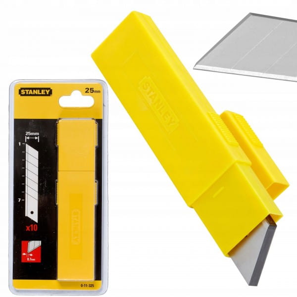 Zestaw 10 sztuk ostrzy łamanych 25 mm Stanley 0-11-325 to doskonały wybór dla wszystkich, którzy potrzebują niezawodnego, trwałego i skutecznego osprzętu do cięcia różnego rodzaju materiałów.