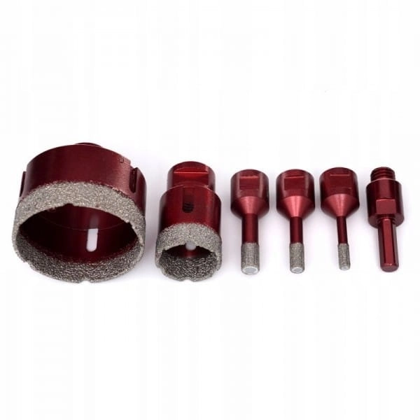 ✔️ Zestaw składa się z aż 5 otwornic diamentowych: 68mm, 35mm, 10mm, 8mm, 6mm oraz adaptera do wiertarki, gwint M14 do szlifierek - kompatybilność z każdą szlifierką M14.