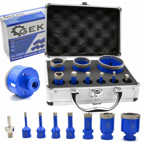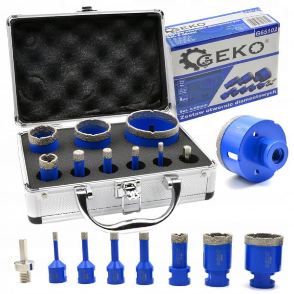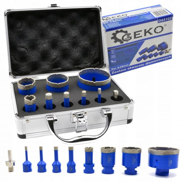 GEKO ZESTAW OTWORNIC DIAMENTOWYCH 9EL. GRESU 6-68MM WALIZKA TRANSPORT 65102
