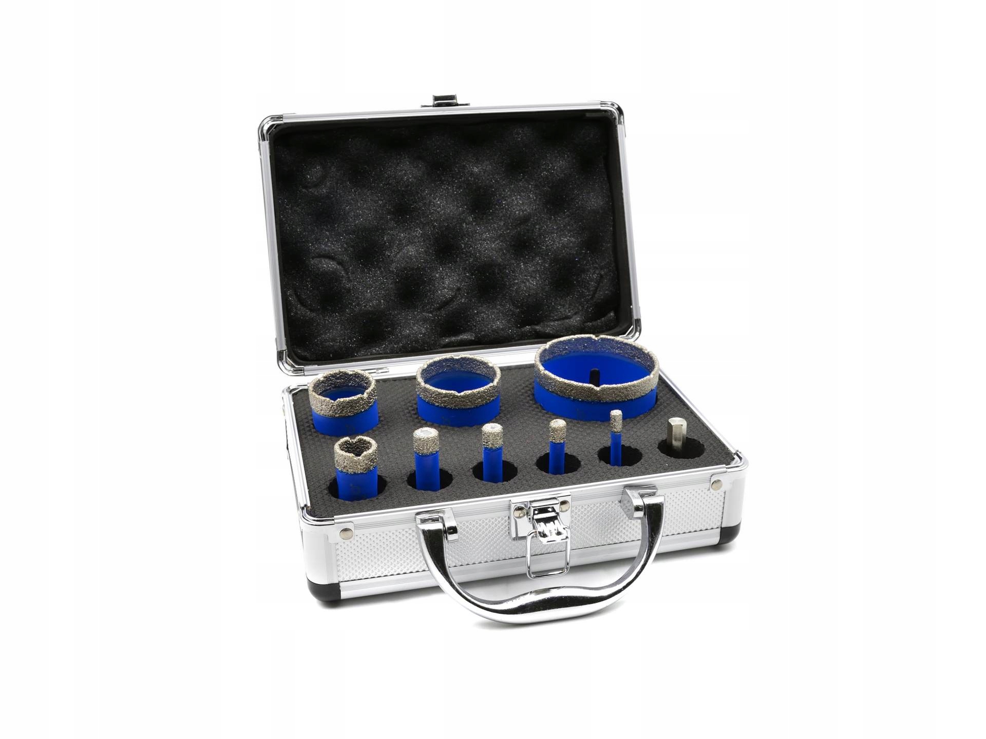 Zestaw otwornic diamentowych w rozmiarach od 6 do 68 mm. Wyposażona w gwint montażowy M14 do mocowania w szlifierkach kątowych. Idealne do wykonywania otworów w materiałach takich jak: gres, płytki ceramiczne, klinkier, glazura oraz kamień naturalny.