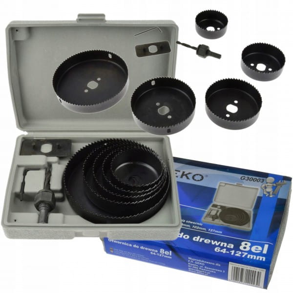 GEKO ZESTAW OTWORNICA OTWORNICE DO DREWNA 8EL 64-127MM WALIZKA G30003