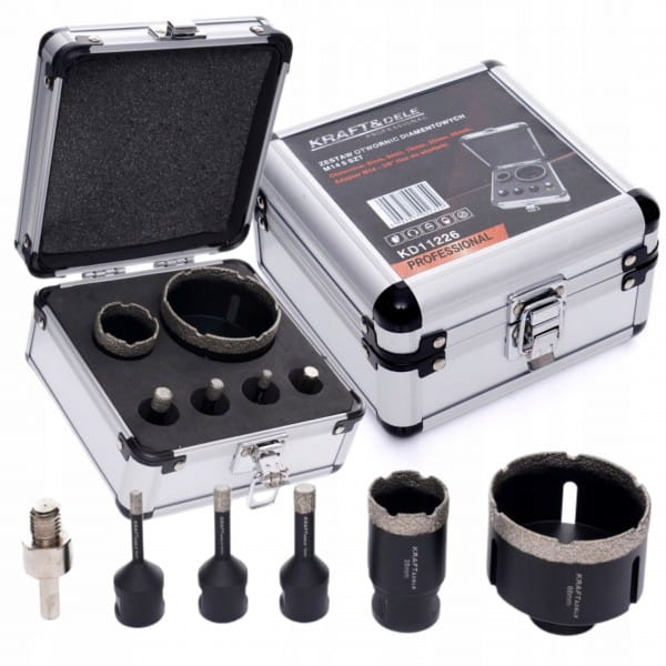 Otwornica koronowa diamentowa polskiej marki Kraft&Dele o modelu KD11226 służy do wiercenia bez udaru "na mokro" w płytkach gresowych, ceramicznych, marmurowych, porcelanie oraz w twardych kaflach.