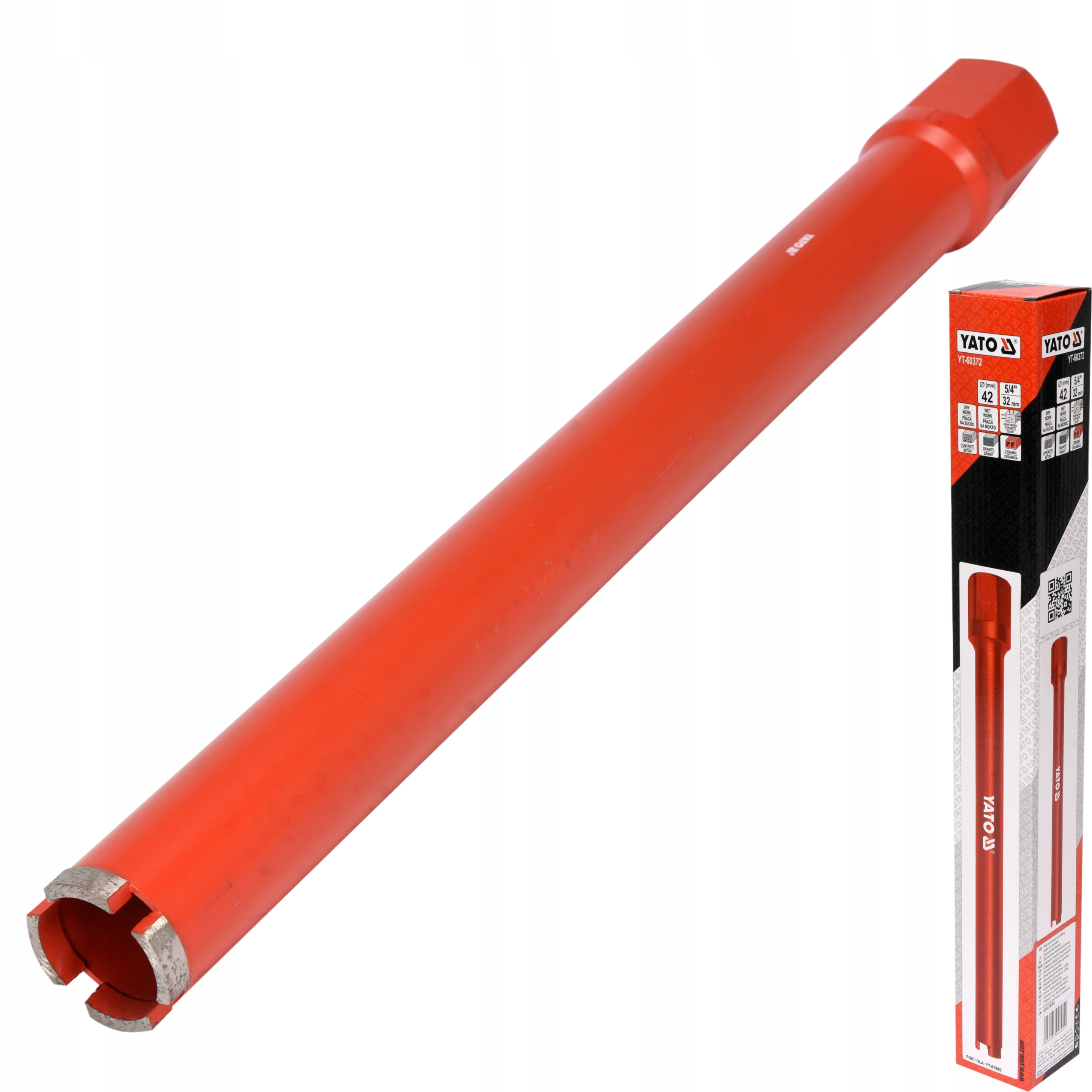 Wiertło koronowe YATO do wiertnicy przeznaczone do pracy bez udaru – na sucho i mokro – z wiertnicą (np. YT-81980). Umożliwia szybkie i precyzyjne wiercenie otworów, także bez statywu, w żelbecie, betonie, silikatach, np. pod puszki elektryczne, przewiercanie stropów pod rury i kable, montaż tras kablowych lub kanałów wentylacyjnych.
