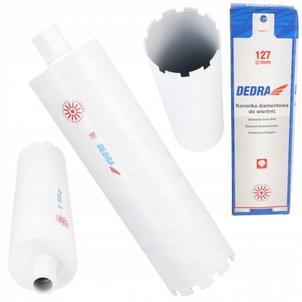 ✔️Koronka diamentowa do wiertnic DEDRA HW4127 ma średnicę 127 mm oraz długość 400 mm, co pozwala na precyzyjne wiercenie otworów o takich wymiarach.