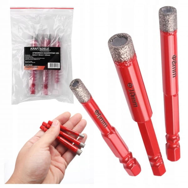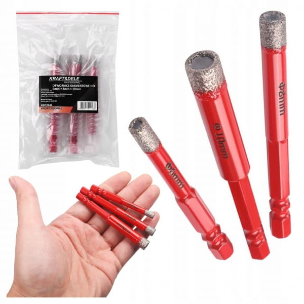 ZESTAW OTWORNIC DIAMENTOWYCH DO GRESU 3 EL HEX 6 8 10 MM KRAFT&DELE KD12645