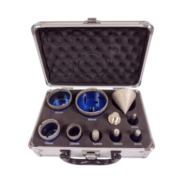 - Otornice diamentowe: 6 mm, 8 mm, 10 mm, 12 mm, 25 mm, 35 mm, 50 mm, 65 mm