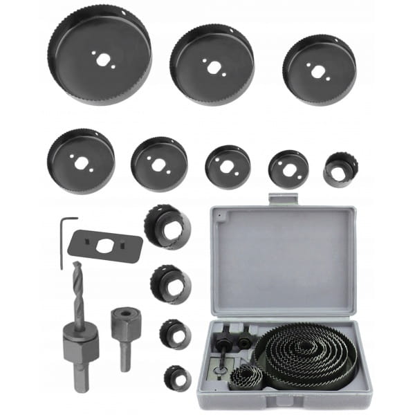 ✅Uniwersalny zestaw 16 otwornic (frezy koronowe) przeznaczonych do wykonywania precyzyjnych otworów w drewnie, płytach MDF, OSB, gipsowo-kartonowych i innych materiałach miękkich. Całość zapakowana w poręczne i wytrzymałe etui, które zapewnia wygodne przechowywanie i transport.
