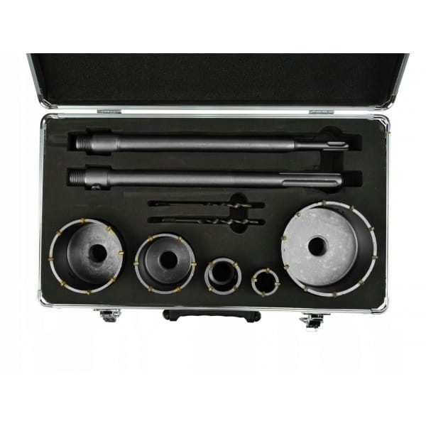 FREZY DO MURU ZESTAW KORONKI 9EL 30-100MM SDS PLUS MAX ADAPTERY