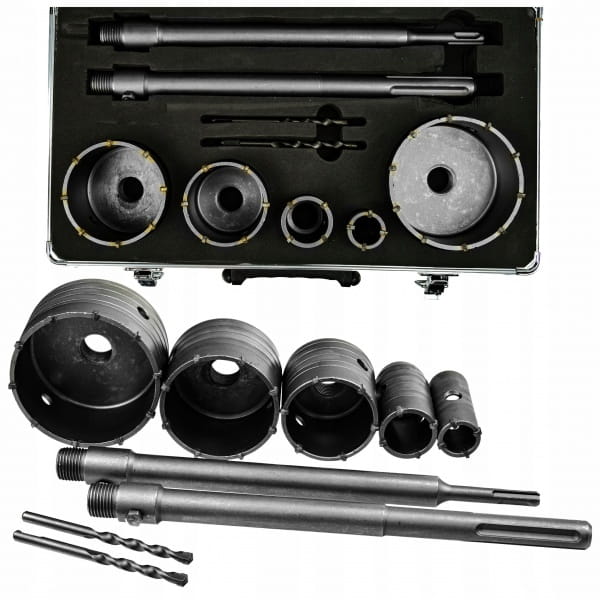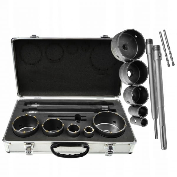 ✔️ Komplet narzędzi przeznaczony do szybkiego i precyzyjnego wykonywania otworów w twardych materiałach budowlanych, takich jak cegła, beton, pustaki ceramiczne, bloczki silikatowe czy gazobeton.