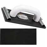 Blok ścierny o wymiarach 220x100 mm wykonany z tworzywa sztucznego. Materiał ścierny mocowany jest przy pomocy dwóch metalowych zacisków dokręcanych nakrętką motylkową. Wygodny uchwyt ułatwia pracę.