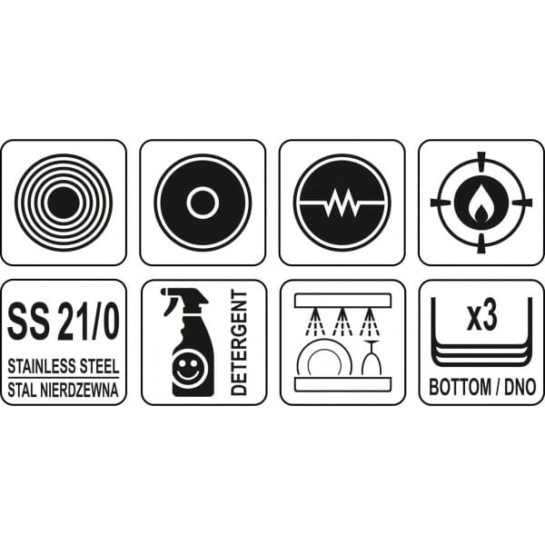 Specjalna wkładka ferromagnetyczna w dnie pozwala na stosowanie patelni YATO na każdym rodzaju kuchenek, takich jak: