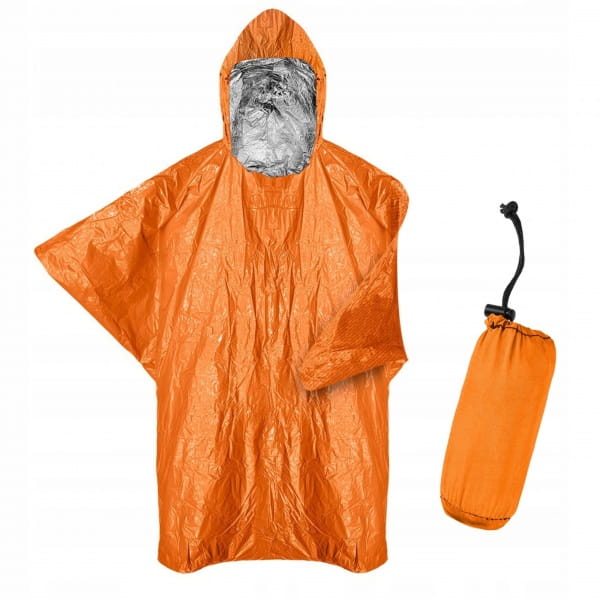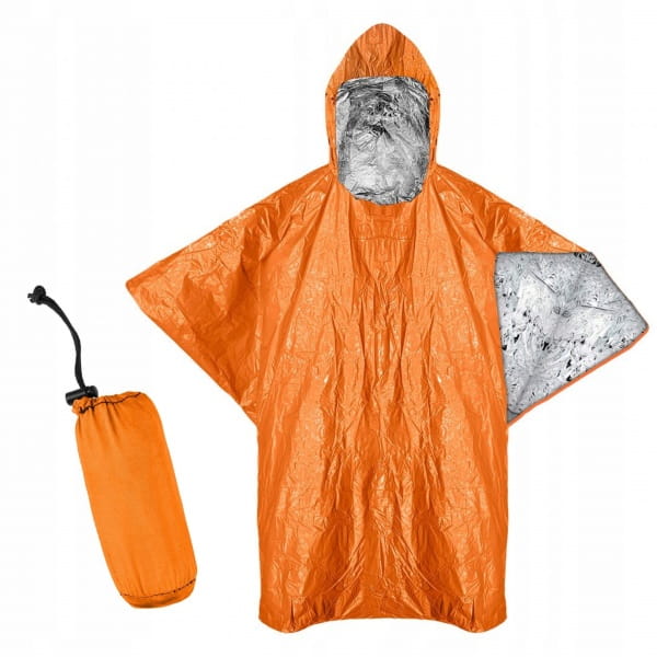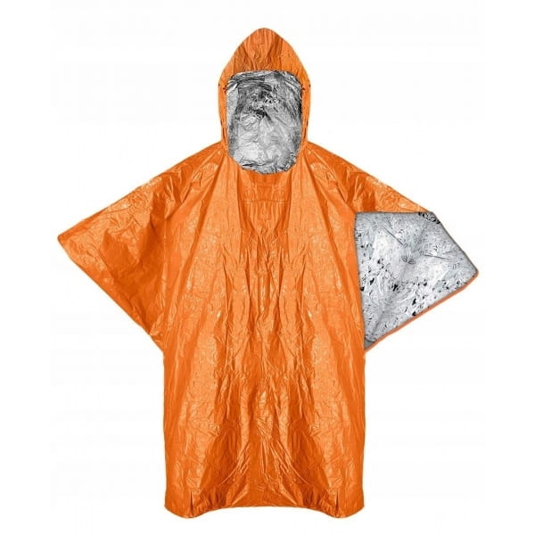 Ponczo termiczne NRC, materiał polipropylen, wodoodporny, chroni przed deszczem i wiatrem, zatrzymuje do 90% ciepła wytwarzanego przez ciało, duży kaptur, waga 77 g
