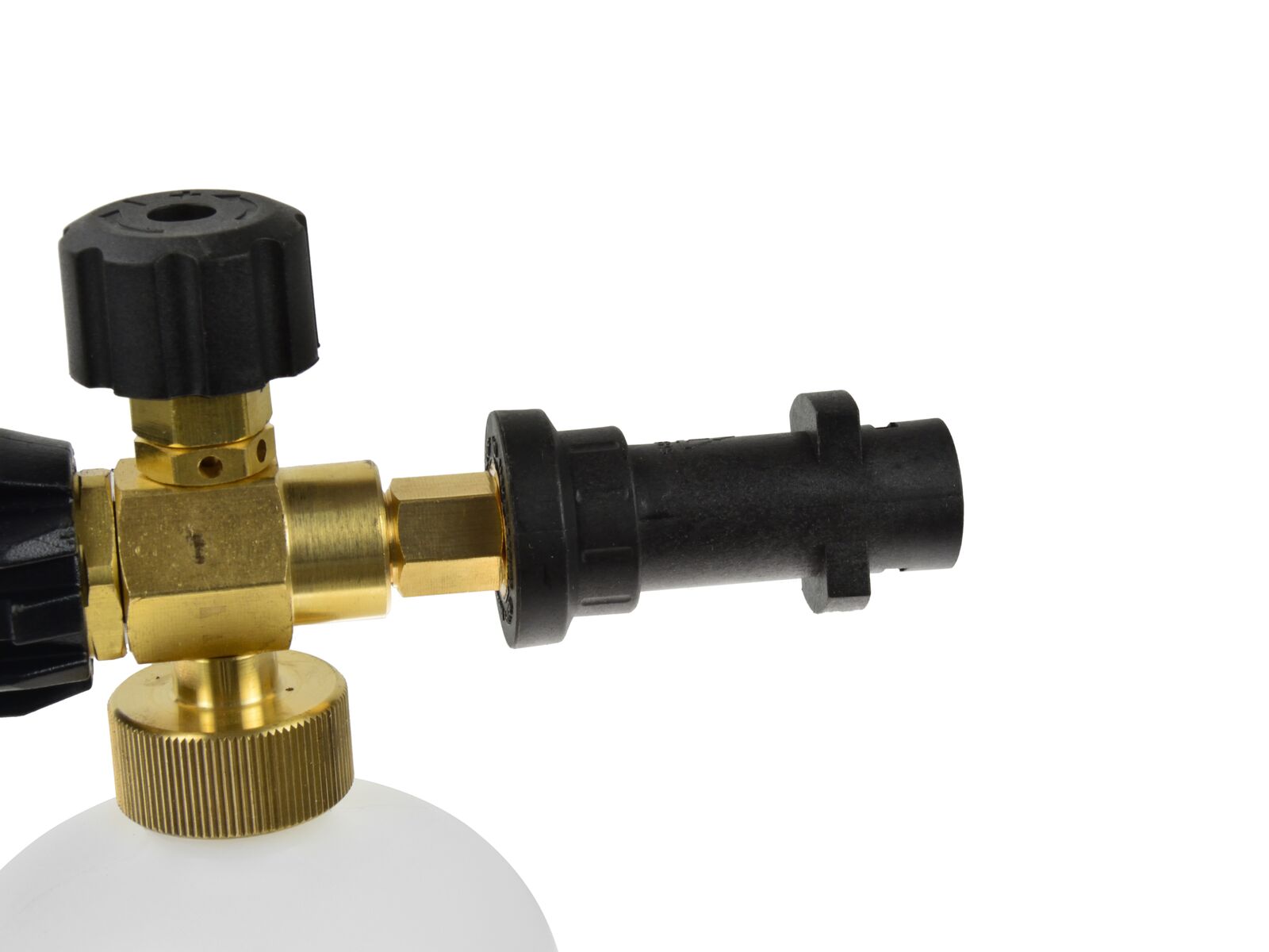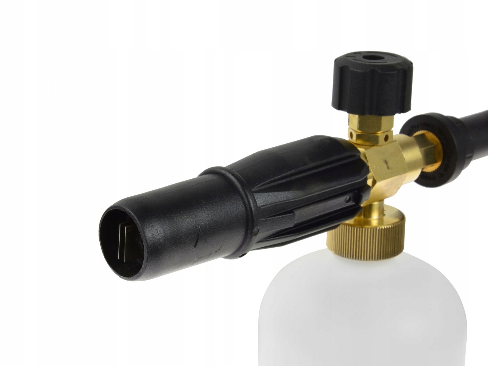 Korpus wykonany z mosiądzu gwarantuje długotrwałe i bezawaryjne użytkowanie. Pianownica daje znacznie więcej możliwości w stosunku do myjek ciśnieniowych wyposażony w zintegrowany zbiornik na detergent. Używając pianownicy mamy możliwość stosowania silniejszej chemii(nawet agresywnej) ponieważ detergent nie jest włączony do wewnętrznego obiegu myjki ciśnieniowej lecz pobierany jest z zasobnika pianownicy dokręconej bezpośrednio do pistoletu ciśnieniowego.