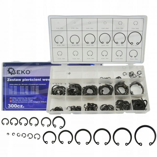 Zestaw 300 pierścieni wewnętrznych Seeger'a w rozmiarach 3 - 32mm.