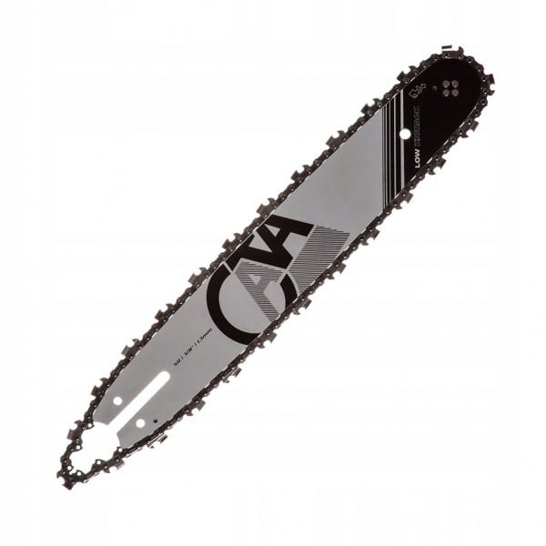 Prowadnice wykonane są z bardzo twardego materiału odpornego na ścieranie i wysoką temperaturę, jaka powstaje w czasie pracy pilarką. Sprawdzają się w najtrudniejszych warunkach, idealnie przenosząc moc pilarki na wydajność cięcia. Do prowadnicy w zestawie znajdują się dwa łańcuchy.