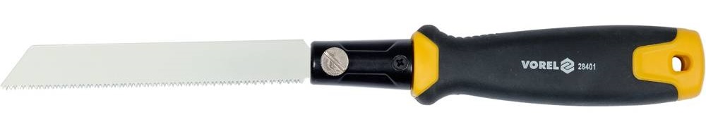 Piła ręczna z trzema wymiennymi brzeszczotami do cięcia drewna, płyt gipsowo-kartonowych i PVC.