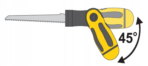 Rękojeść ma przegub umożliwiający pracę pod kątem 45°.