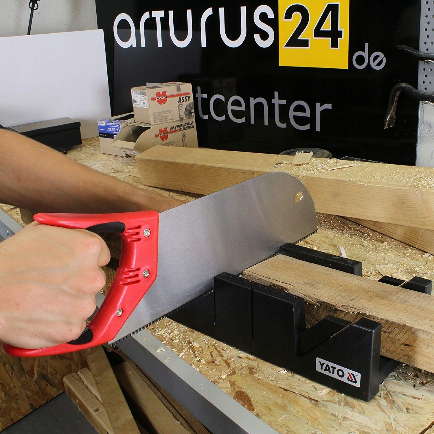 Piłka przystosowana do cięcia w skrzynce uciosowej. Brzeszczot wykonany ze stali manganowej o symbolu Mn65, odporny na ścieranie i odkształcenia. Zęby piły o specjalnym trójstronnym profilu przystosowane są do precyzyjnego cięcia w obu kierunkach. Zęby utwardzane do 50-54 HRC. Podziałka 12 TPI . Skrzynka o długości 300 mm wykonana z tworzywa ABS przeznaczona do zacinania pod kątem 45° lub 90°