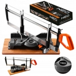 Piła kątowa NEO o długości brzeszczotu 600 mm. Przeznaczona do cięcia w płaszczyźnie poziomej i pionowej pod kątami 15°, 22.5°, 30°, 36°, 45° i 90°. Maksymalna wysokość cięcia wynosi 155 mm, a szerokość dla kąta 90° - 175 mm, a 45° - 111 mm. Bardzo wydajne uzębienie 18 zębów na cal usprawnia pracę produktem. Wygodny uchwyt z tworzywa sztucznego dobrze leży w dłoni, co podnosi komfort pracy. Gwarantem wysokiej jakości i niezawodności produktu jest certyfikat TÜV Rheinland