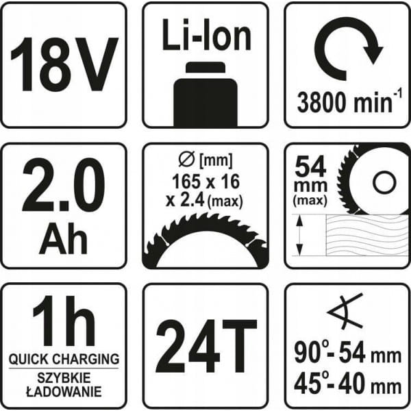YATO YT-82810 PILARKA TARCZOWA PIŁA165MM AKUMULATOROWA 18V +2AH KRAJZEGA