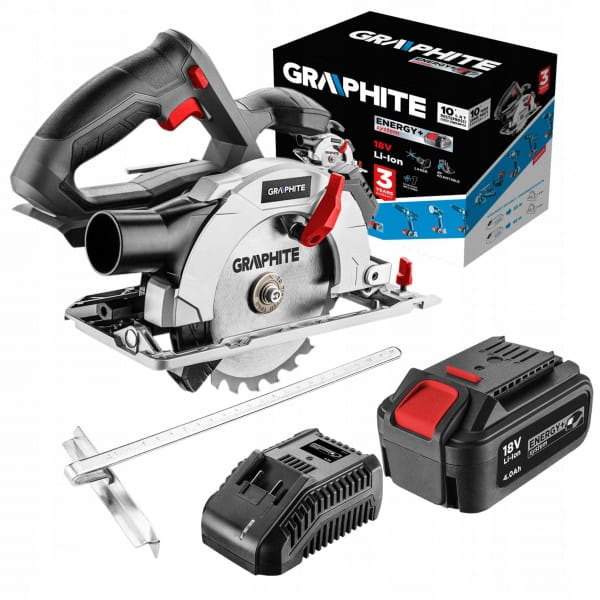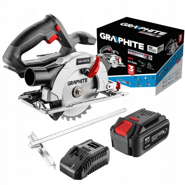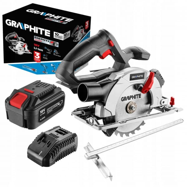 Zestaw E+: pilarka tarczowa (58G008) + akumulator 4ah + ładowarka 58G008-BC GRAPHITE to kompleksowy zestaw należący do nowoczesnej serii systemu Energy+, niezbędny podczas remontów na placach budowy czy prac w warsztacie profesjonalisty jak i majsterkowicza. Składa się na: wytrzymałą pilarkę tarczową z tarczą 150 x 10 mm, akumulator o pojemności 4 Ah oraz wygodną w użytkowaniu ładowarkę.