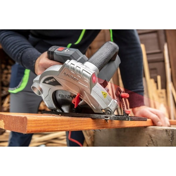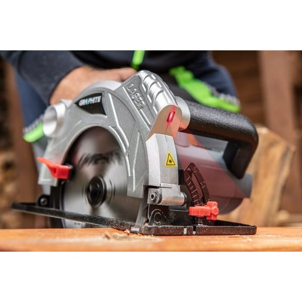 Pilarka tarczowa GRAPHITE została zaprojektowana z myślą o wygodnym i pewnym prowadzeniu. Posiada dodatkową kabłąkową rękojeść z szeroką powierzchnią chwytu, co zapewnia stabilność i kontrolę podczas pracy. Na widocznym dla operatora miejscu umieszczono wskaźnik informujący o podłączeniu elektronarzędzia do sieci i gotowości do pracy.