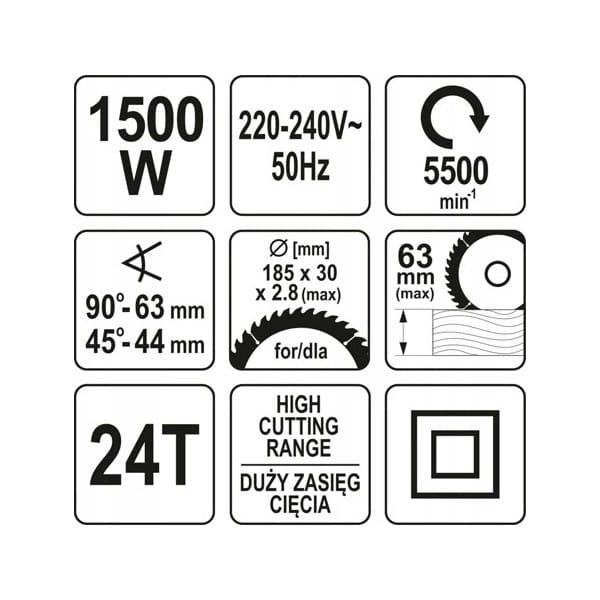 YATO PILARKA PIŁA TARCZOWA ELEKTRYCZNA 185MM 1500W SIECIOWA YT-82151
