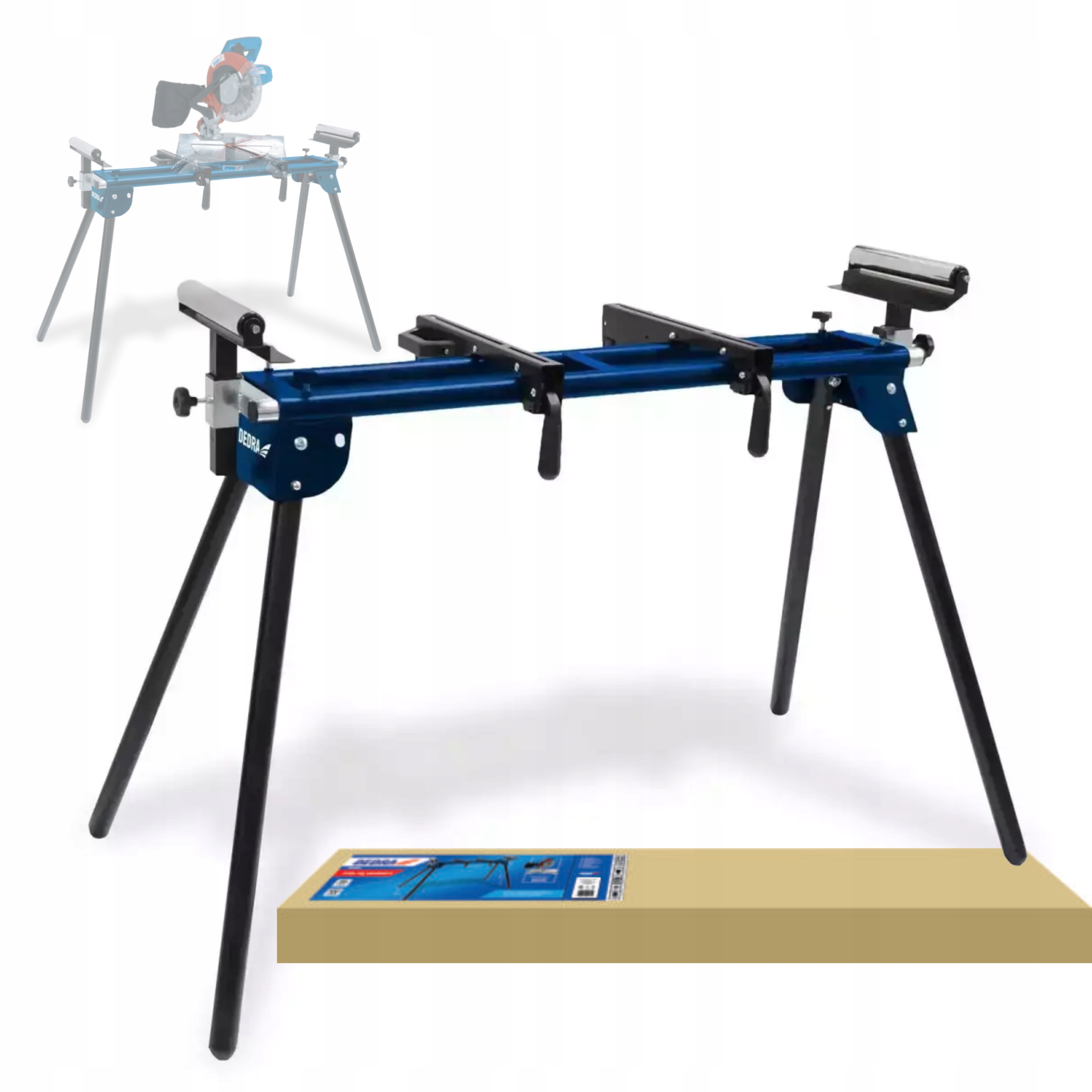 Stół do ukośnicy N112 jest dedykowany do ukośnicy DED7745. Stół wytrzymuje obciążenie do 150 kg. Ruchome szyny do montażu ukośnicy pozwalają na dowolne umiejscowienie maszyny na stole. Stół posiada dwie regulowane rolki dla lepszej stabilizacji ciętych materiałów. Składana konstrukcja pozwala na szybkie rozłożenie i złożenie stołu. Stabilne nogi umożliwiają rozstawienie stołu na dowolnym podłożu.