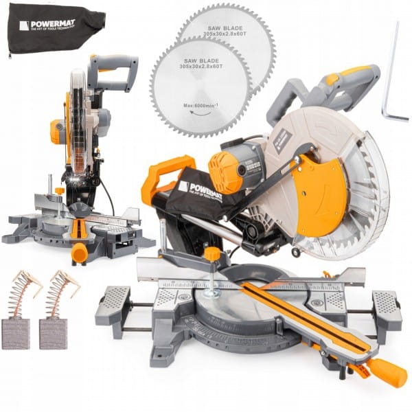 Piła ukosowa - ukośnica marki POWERMAT o mocy aż 2200 W idealnie nadaje się do codziennego majsterkowania. Świetnie sprawdza się do cięć ukośnych i kątowych. Piła ukośna firmy POWERMAT ma podwójną szynę ślizgową, którą można zablokować specjalnym uchwytem blokującym. Zaprojektowana z myślą o wszechstronnym zastosowaniu, dokładnie i precyzyjnie tnie obrabiane drewno, tworzywa sztuczne oraz twarde i miękkie drewno.