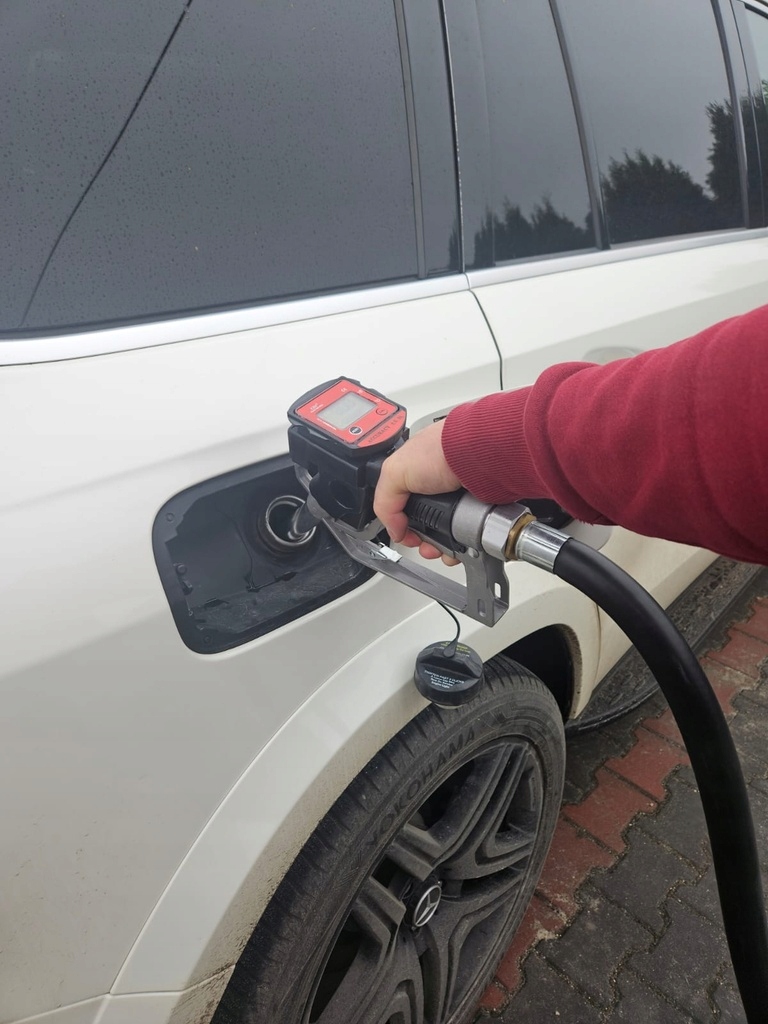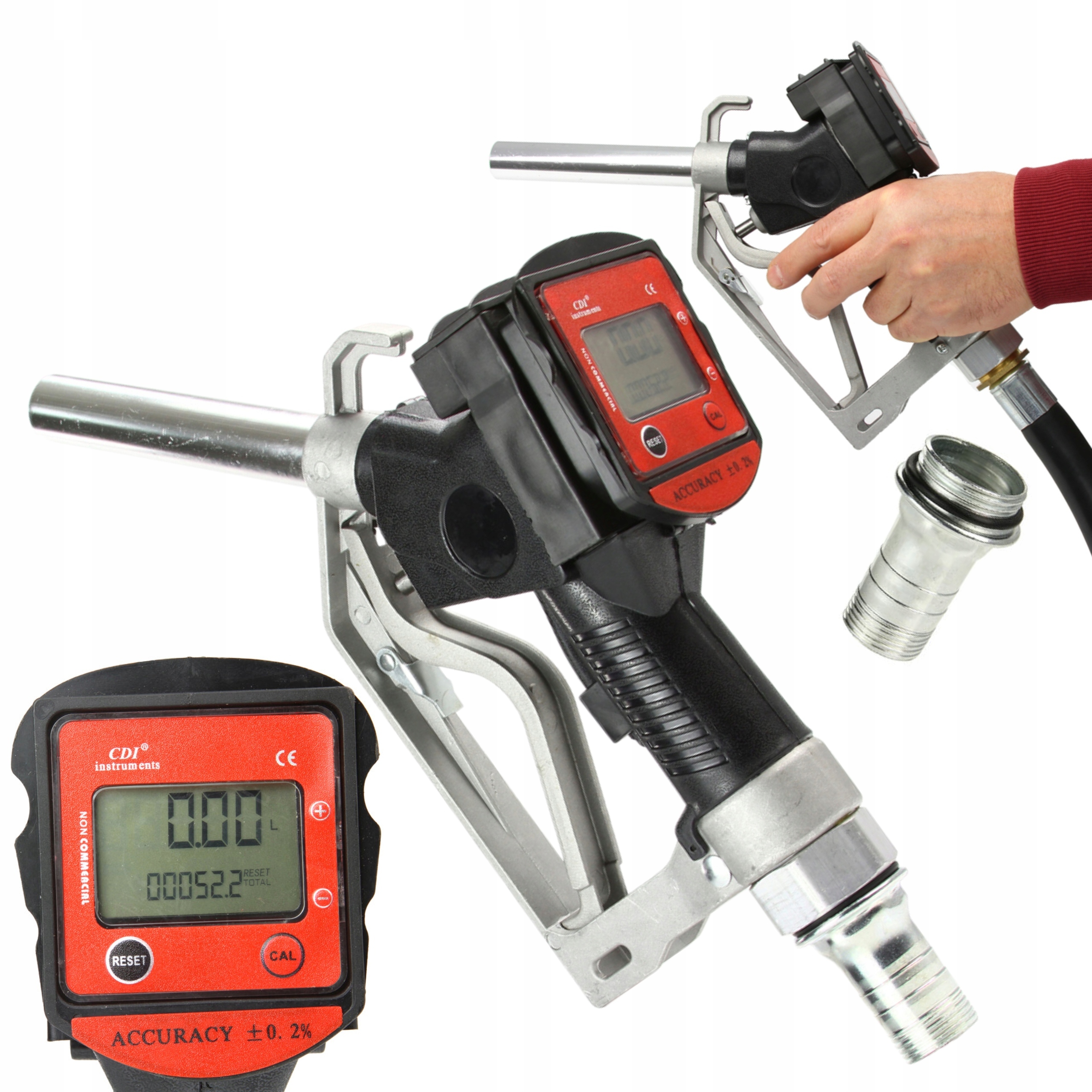 Nowoczesny pistolet do paliwa wyposażony w elektroniczny miernik przepływu (z dokładnością +/- 0.2%) przeznaczony do użytku w: