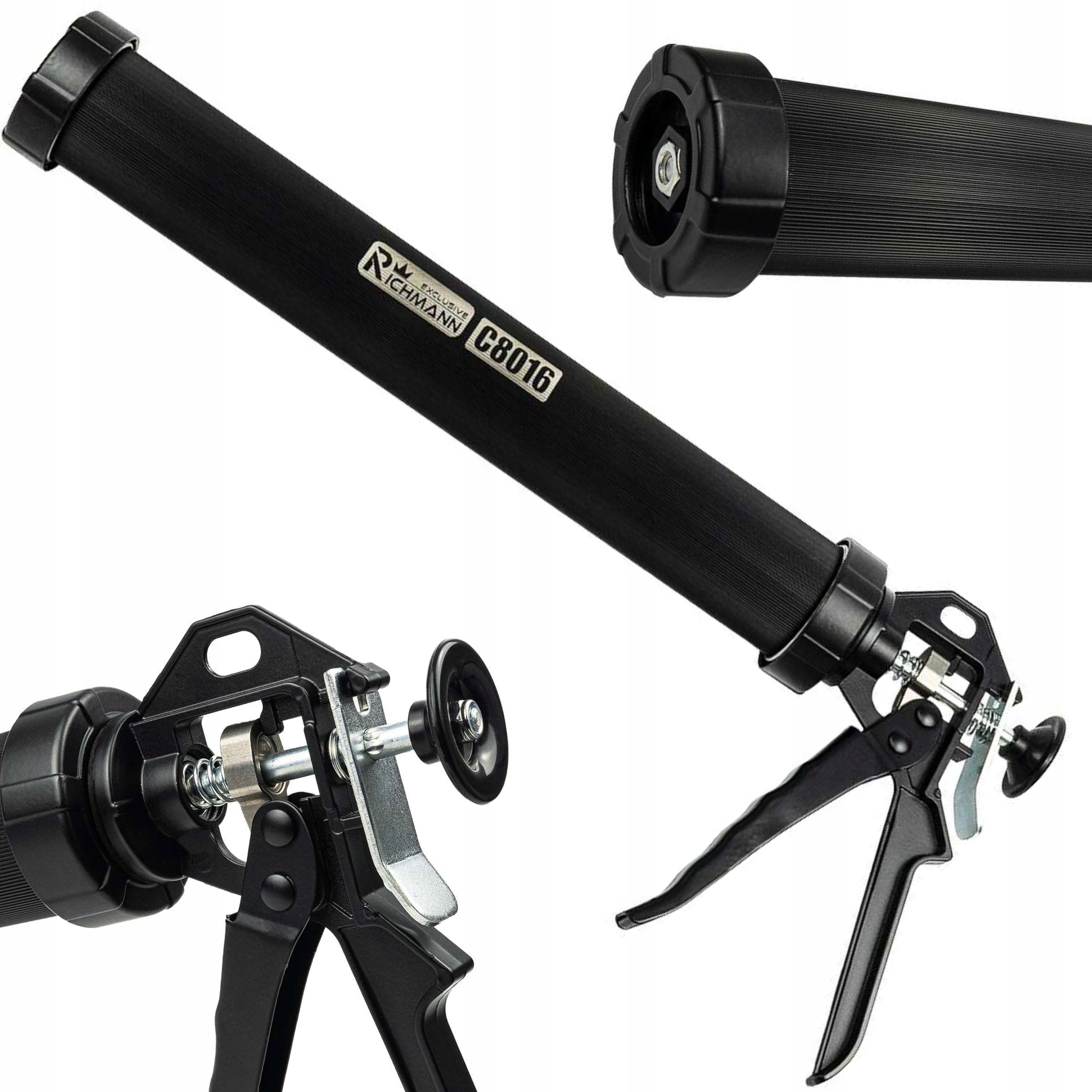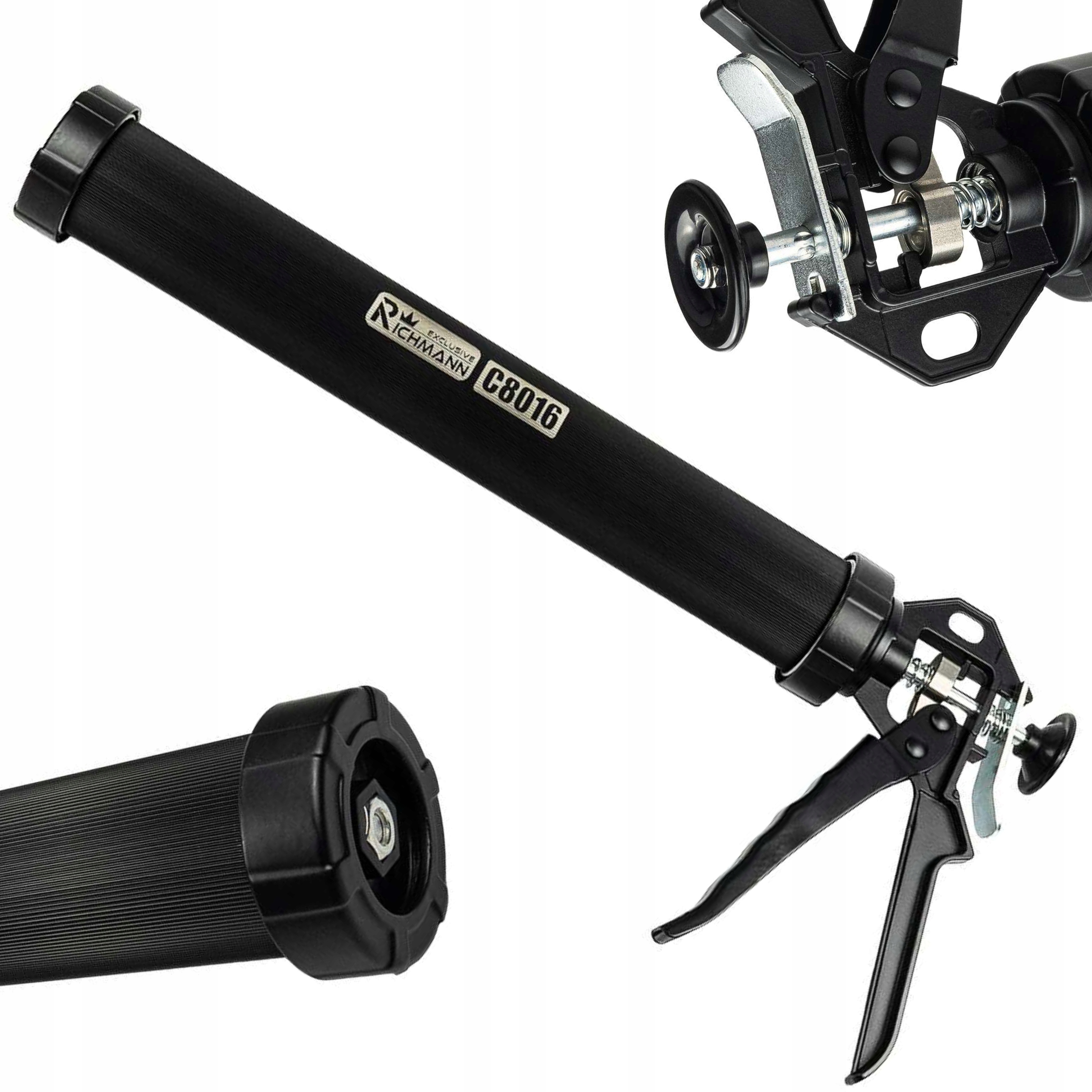 Wykonany z aluminium tubowy pistolet do silikonu o długości 375 mm.