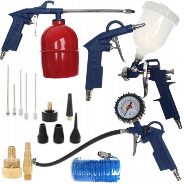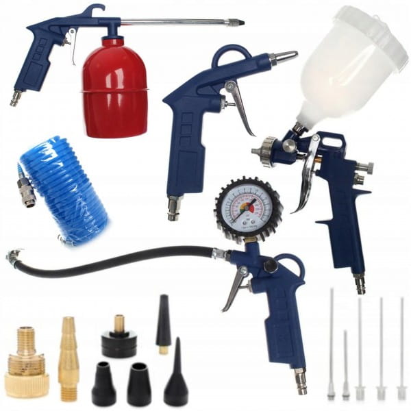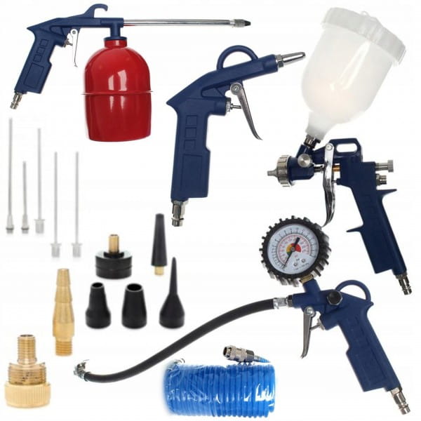 Zestaw pneumatyczny - praktyczny dodatek do kompresora, który znajdzie zastosowanie w każdym gospdarstwie domowym, warsztacie. W zestawie znajdziecie akcesoria: