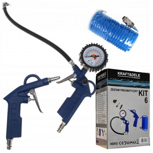 - Pistolet do przemywania tzw."ropownica" ma długą, praktyczną dyszę rozpylającą, która ułatwia mycie i czyszczenie Pistolet do pompowania z manometrem jest doskonały do pompowania i kontroli ciśnienia ogumienia pneumatycznego. Posiada gumową obudowę zegara. Wyposażony jest w zawór spustowy powietrza.