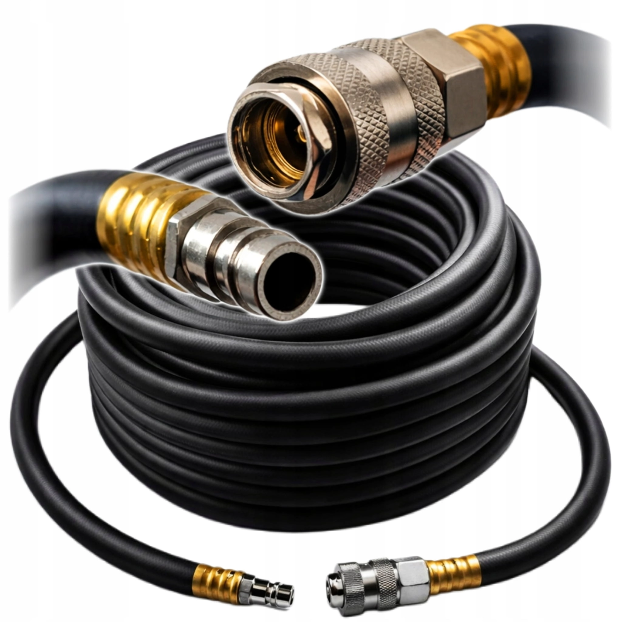 Zastosowane szybkozłącza umożliwiają sprawne i bezproblemowe podłączenie węża do narzędzi pneumatycznych.