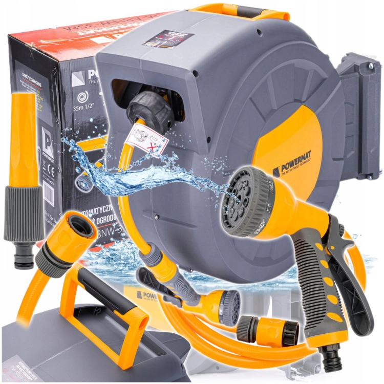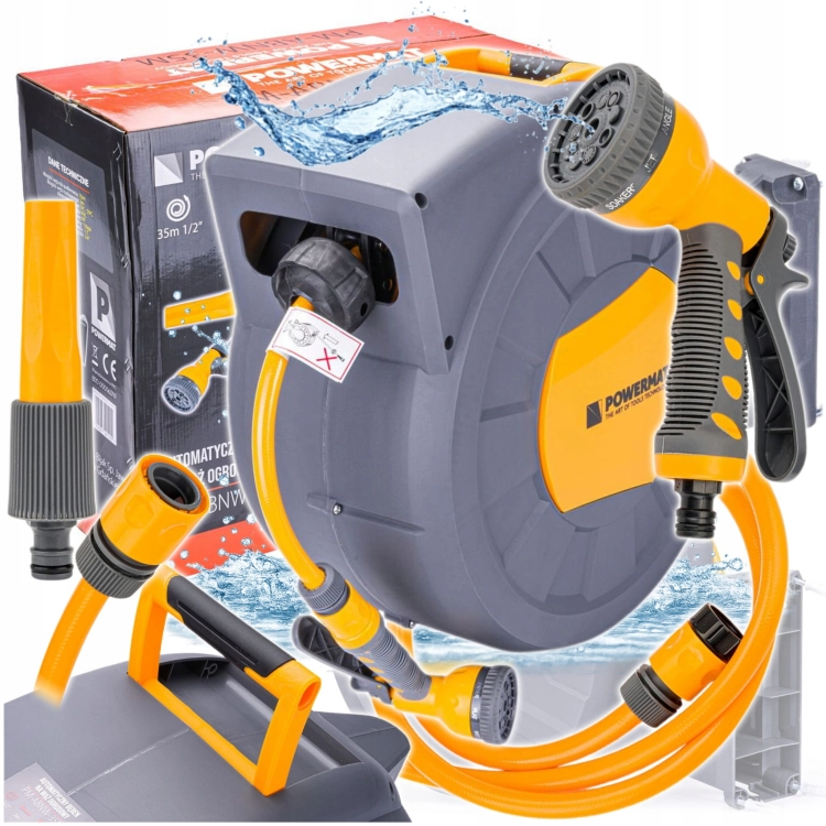 Automatyczny bęben na wąż ogrodowy marki POWERMAT przeznaczony jest do wygodnego przechowywania i użytkowania węża ogrodowego. Dzięki automatycznemu procesowi zwijania węża, nawadnianie, zraszanie i wszelkiego rodzaju prace z wężem ogrodowym jeszcze nigdy nie były tak przyjemne. Bęben zapewni komfort pracy i zapobiegnie plątaniu i zaginaniu się węża. ⭐O PRODUKCIEAutomatyczny zwijacz na wąż ogrodowy to idealne rozwiązanie dla osób ceniących wygodę. Teraz podlewanie Twoich roślin stanie się bardzo proste oraz niezwykle przyjemne, bez ryzyka potknięcia się. Dzięki zostawaniu obrotowemu uchwytu istnieje możliwość zamontowania bębna na ścianie oraz jego obrót. Oferowany bęben automatyczny ma 2-3 pozycje blokad na metr, co znacząco ułatwia ustawienie wymaganego zasięgu użycia. Gwarantuje także łatwe i bezpieczne przechowywanie węża w trwałej, kompaktowej obudowie. ⭐Zastosowania: