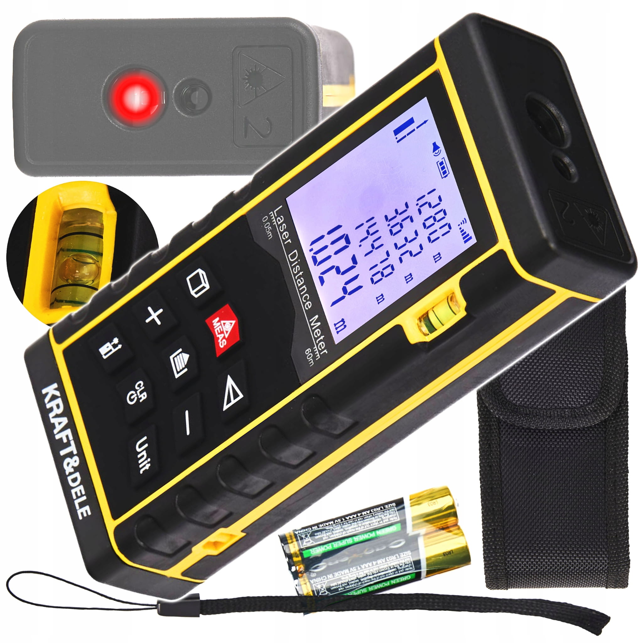 LASEROWY MIERNIK CYFROWY DALMIERZ LCD 60m + ETUI KRAFT&DELE KD10406