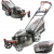 Kosiarka ma funkcje, które dostosują się do różnego rodzaju trawników. Wyrzut do kosza - trawa jest od razu zbierana do kosza, nie pozostaje na powierzchni trawnika. Zebrana trawa może być szybko i wygodnie opróżniona z kosza. Mielenie (mulczowanie) - Skoszona trawa jest rozdrabniana na drobne kawałki i rozrzucana na trawniku. Drobinki trawy szybko się rozkładają, pełniąc rolę naturalnego nawozu. Funkcja mycia obudowy polega na podłączeniu węża ogrodowego do korpusu kosiarki. Przy włączonym silniku woda podawana przez wąż na wewnętrzną część obudowy, porusza ostrze i „myje” kosiarkę od spodu, tam gdzie najwięcej zaschniętej zlepionej trawy. Kosiarka spalinowa przystosowana jest do pracy również z nowymi paliwami takimi jak benzyna E10, co mają potwierdzone odpowiednimi certyfikatami. | |