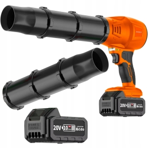 Konstrukcja urządzenia została zaprojektowana z myślą o wygodzie użytkownika. Gumowana rękojeść poprawia chwyt i komfort pracy, a regulacja prędkości pozwala dopasować siłę nadmuchu do rodzaju wykonywanego zadania. Dodatkowym udogodnieniem jest wbudowana lampka LED, która poprawia widoczność w słabiej oświetlonych miejscach, oraz wskaźnik mocy informujący o stanie zasilania. System montażu akumulatora umożliwia szybkie osadzenie go w urządzeniu, a ładowanie odbywa się po podłączeniu akumulatora do dedykowanej ładowarki.
